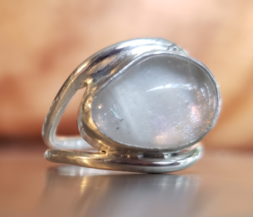 Kiln fired glass in starry colors with encases a hand made glass cabochon containing the ashes or hair of your passed on loved one or pet. Ashes are seen but hair will not be visible. The glass portion is 10-15mm oval shape bezel set in 12 gauge fine silver. It measures about 3/4″ – 1″ above and 1/2″ thick under your finger. These rings have a lower profile are stunning in the sun light. Each one is unique so slight variations happen. Pieces are able to be polished and tumbled as other silver jewelry. After you complete your transaction, we will send you a packet with instructions to collect your ashes or hair.