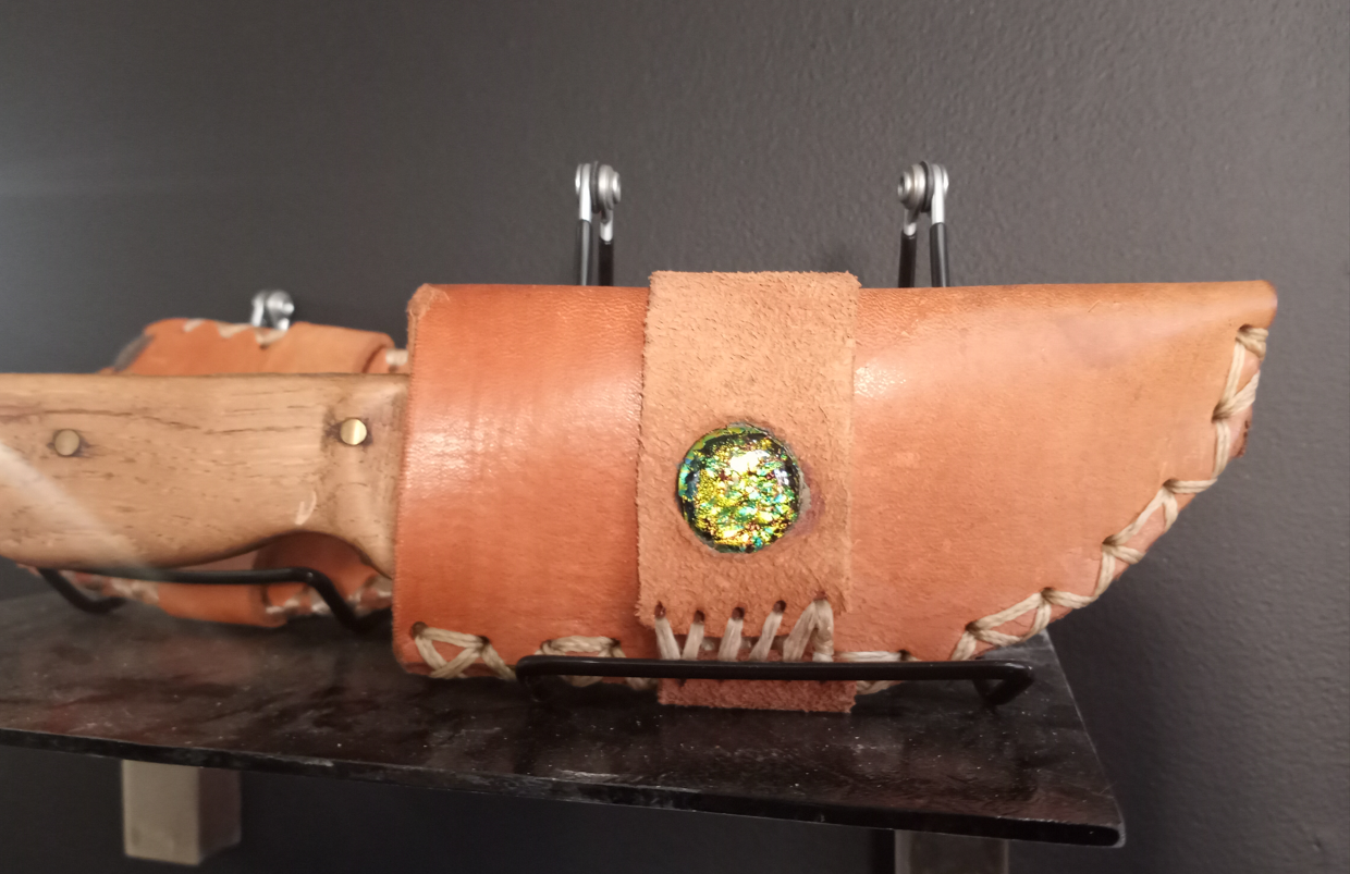 Honor your loved ones with this beautiful knife with hand-made sheath and infused memory stone.